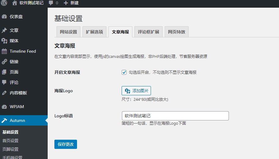 开启文章海报需勾选Autumn后台设置,配置阿里云OSS跨域并设置WPJAM的CDN域名为bucket外网访问域名。