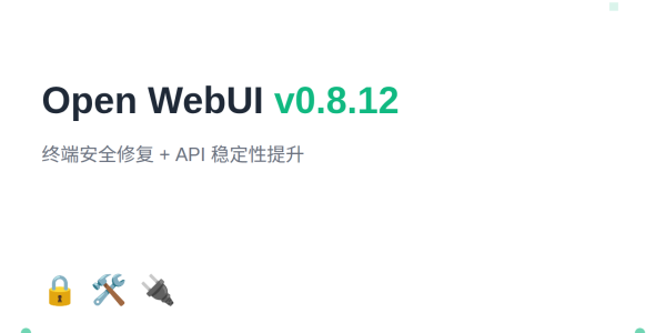 Open WebUI 发布了 v0.8.12 版本,本次更新主要包含安全修复、依赖补全和多项 Bug 修复,提升了终端连接安全性和 API 稳定性。