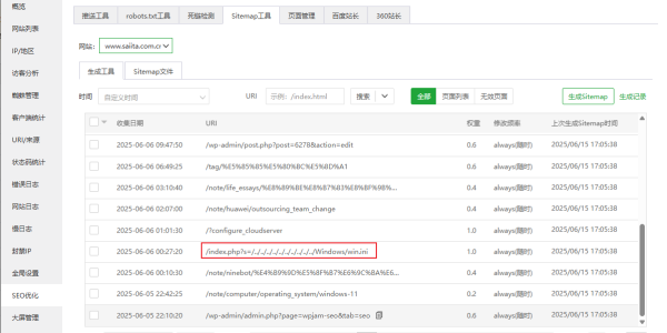 某网站推送工具存在高危漏洞,自动收录博客编辑页面和恶意URL,建议关闭自动生成Sitemap功能以防目录遍历攻击。
