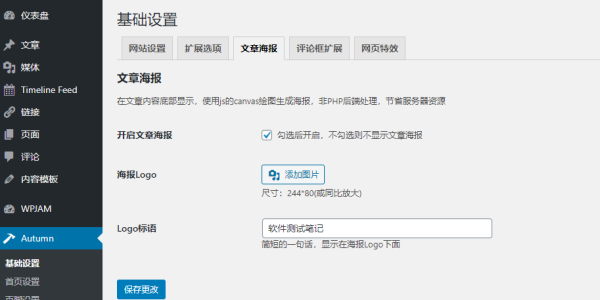 开启文章海报需勾选Autumn后台设置,配置阿里云OSS跨域并设置WPJAM的CDN域名为bucket外网访问域名。