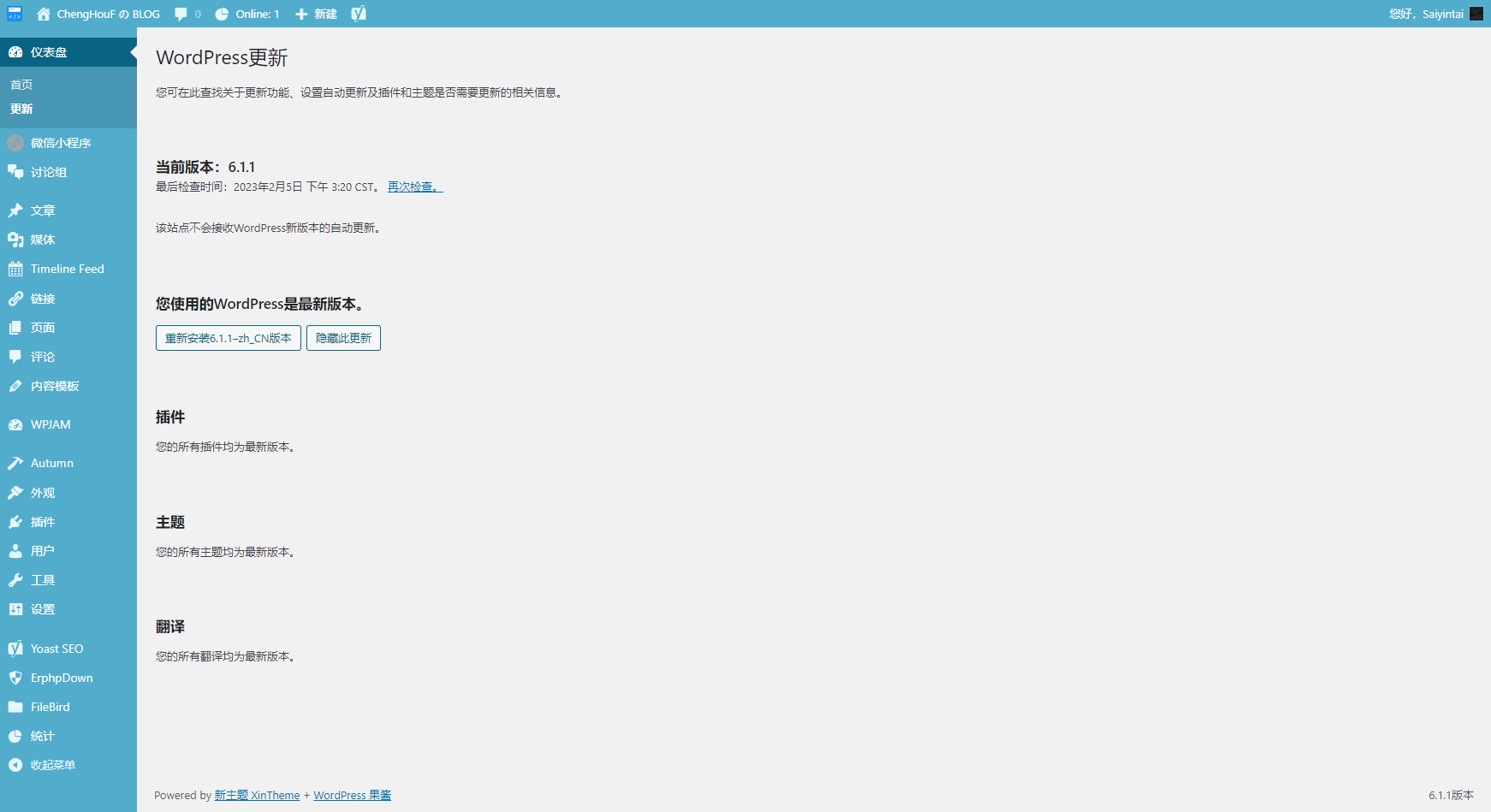 到wordpress后台-仪表盘-更新,点击重新安装6.1.1-zh_CN版本,问题就解决了