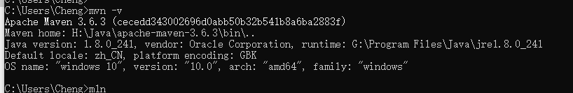 cmd输入:mvn -v 验证是否配置成功