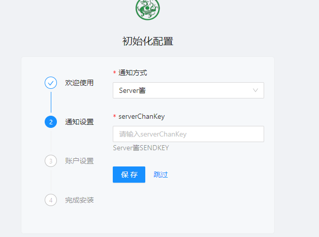 通知方式选择Server酱,serverChanKey就是第一步点击扫码后点此继续后,页面会给出一个key,也可以点击跳过
