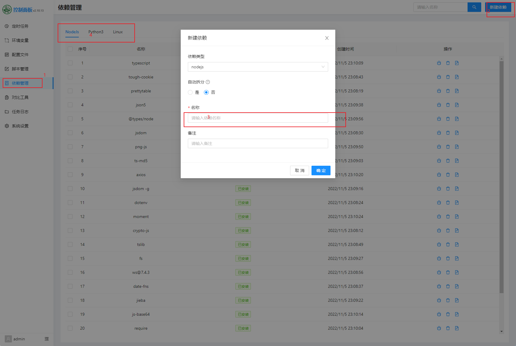 5)青龙面板添加依赖库