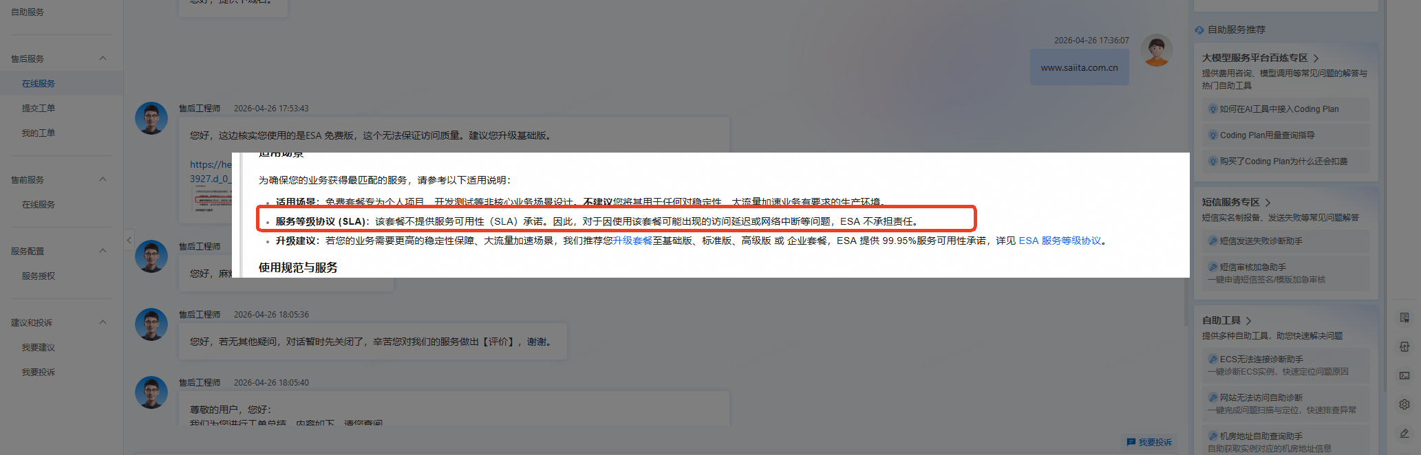 问题了在线客服,答复是不保证提供服务可用性SLA承诺,而且阿里云免费版的ESA 不承担责任,要加速全球博客访问加速必须要升级;果然免费的东西都不会太好;