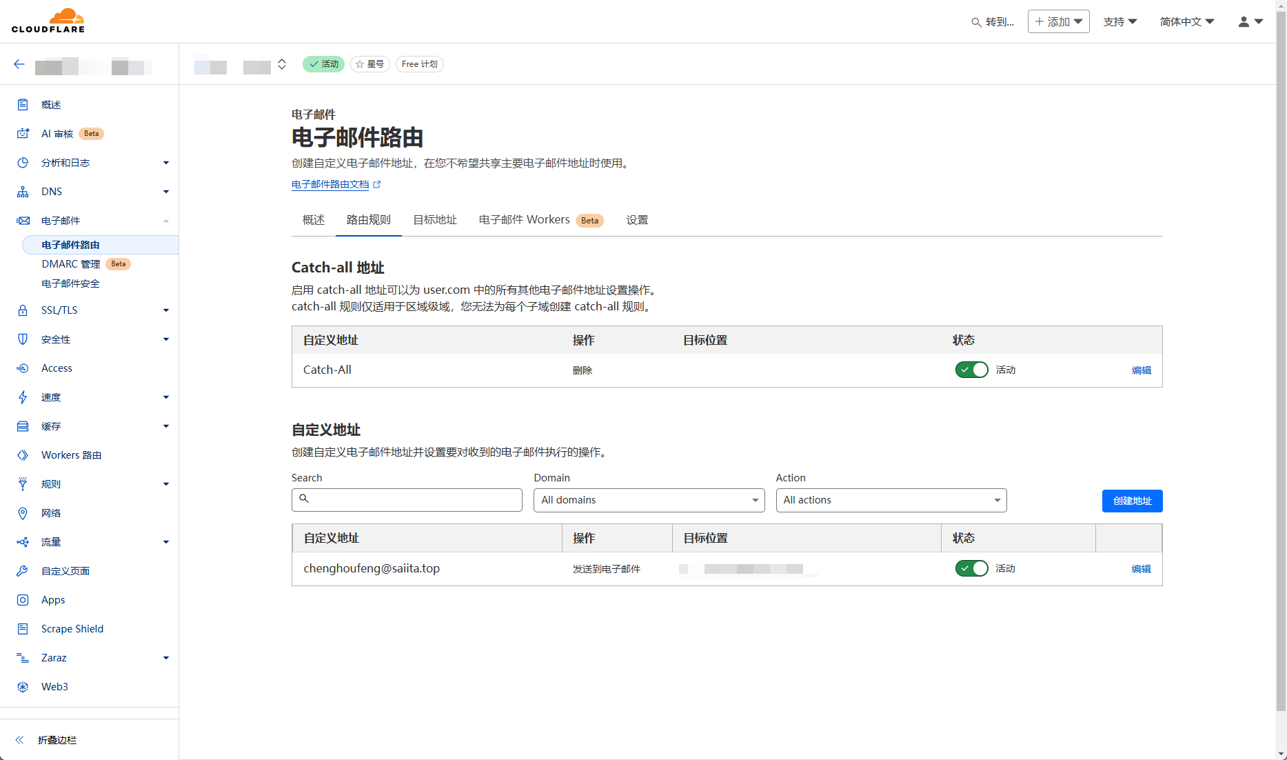 📌然后设置Cloudflare电子邮件的路由规则和目标地址(已经自动化配置好了)
