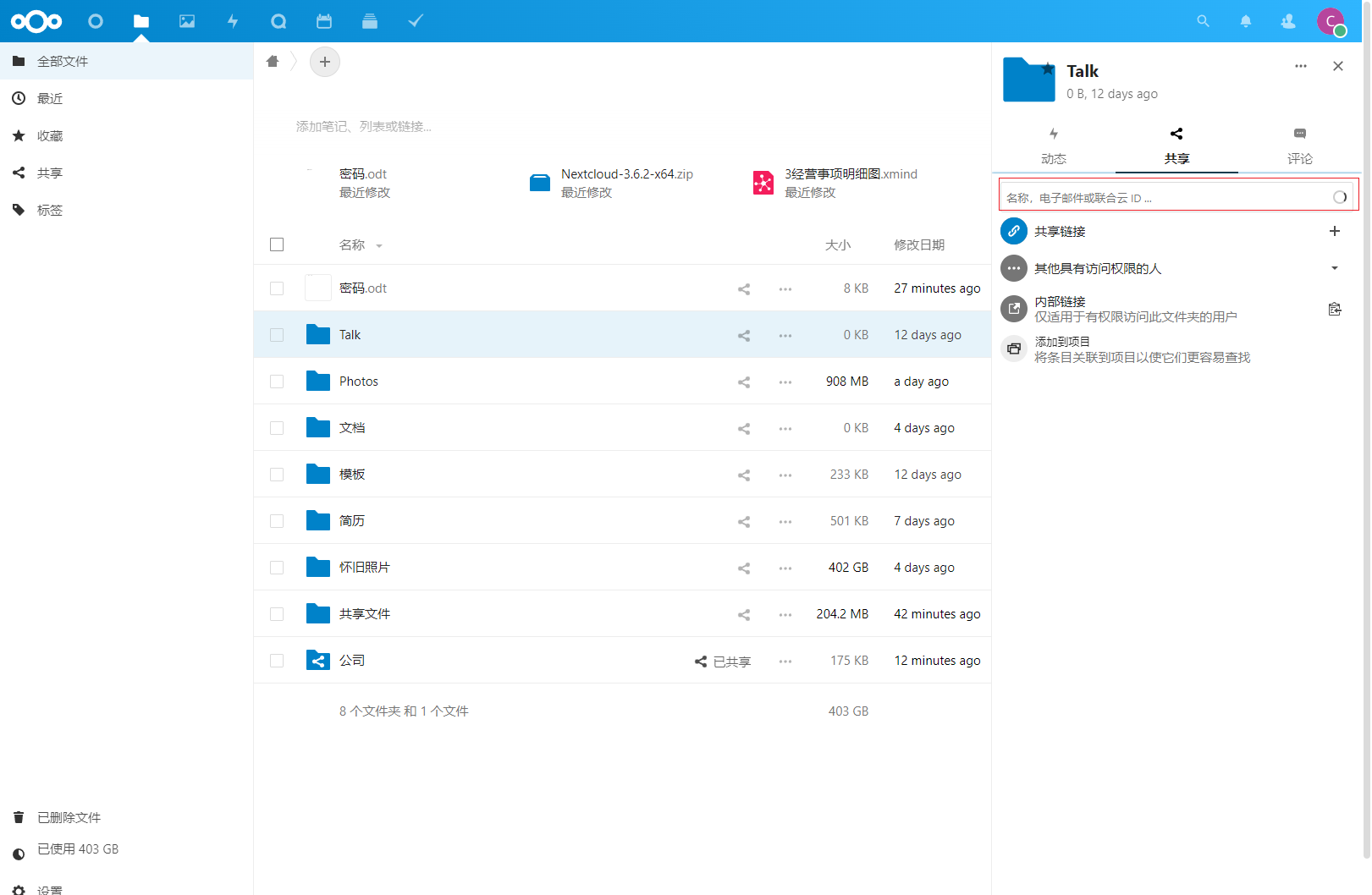 NextCloud 2022-11-10 Nextcloud 又重装了 Docker部署NextCloud问题频发,但优于功能混乱的可道云。OnlyOffice需企业版授权,免费工具收费不合理。NextCloud虽启动较慢,整体体验良好。
