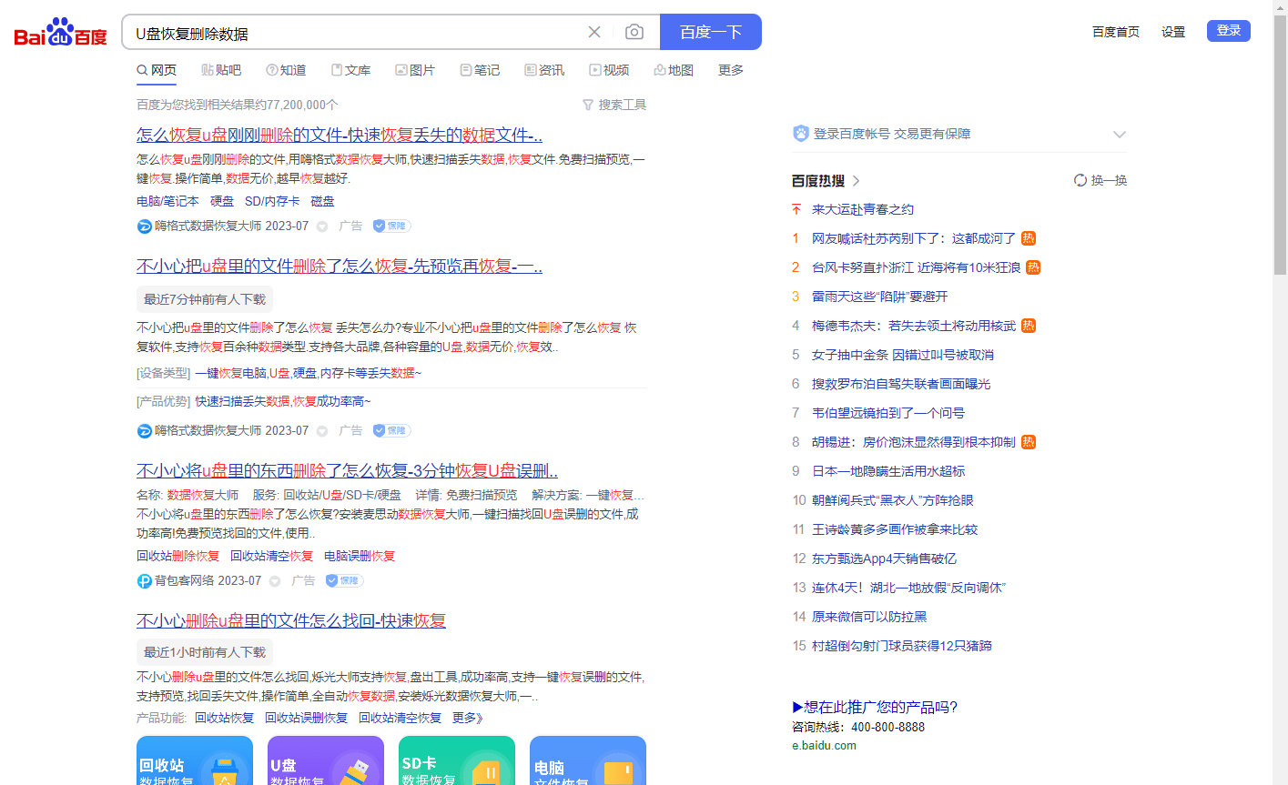 然后在百度上搜索怎么恢复删除的数据,排在前面的都是国内的删除软件,下载了1个,果然是要收费的。