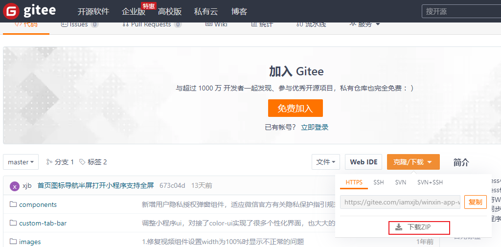 2.1、下载微信小程序代码