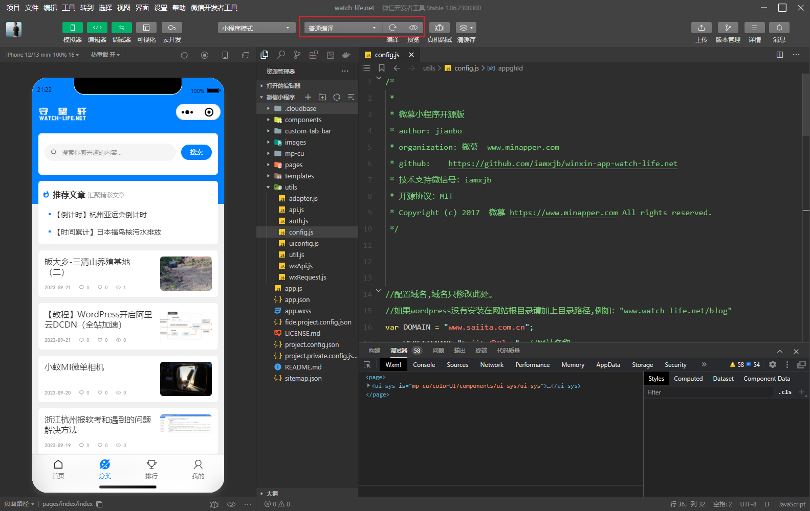 配置好后,再次点击普通编译,微信小程序和wordpress插件相关配置就完成了。