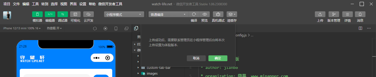 2.3、上传微慕小程序