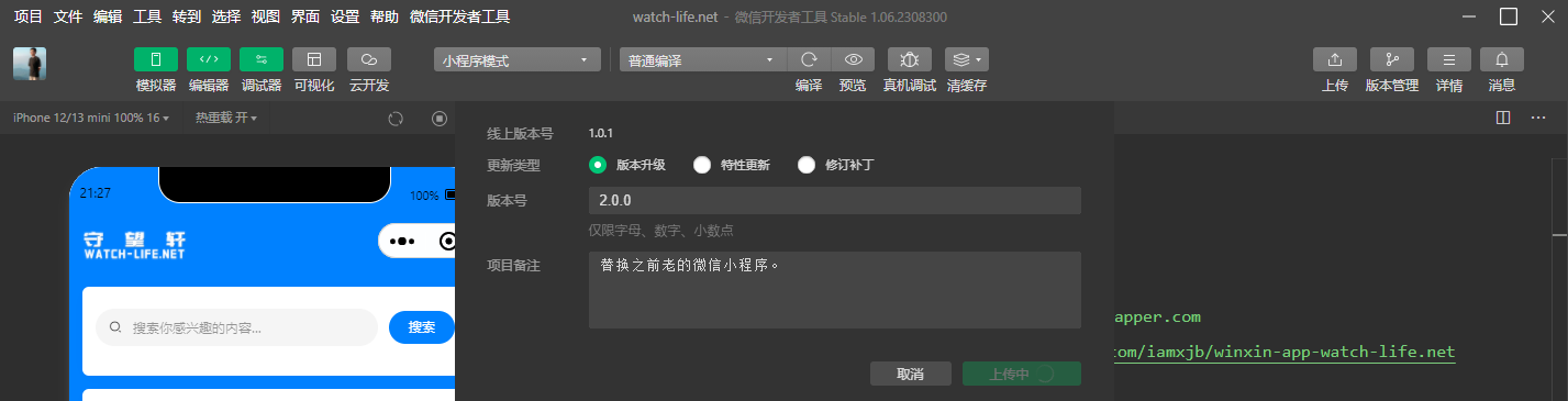 三、上传代码到微信服务器