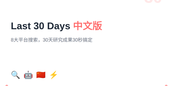 如果你经常需要在中国互联网平台搜索信息、做竞品调研或追踪热点话题,last30days-skill-cn 这个开源项目值得一试。它是一个 AI Agent 技能,能够自动搜索中国 8 大主流平台最近 30 天的内容,综合分析后生成有据可查的研究报告。
