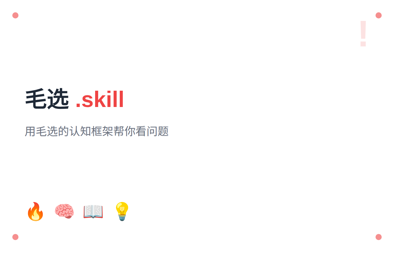 毛选.skill 是一个运行在 Claude Code 上的 Agent Skill,基于《毛选》五卷核心著作——《矛盾论》《实践论》《论持久战》《星星之火,可以燎原》《中国社会各阶级的分析》等,提炼出了 7 个核心心智模型和 10 条决策启发式。