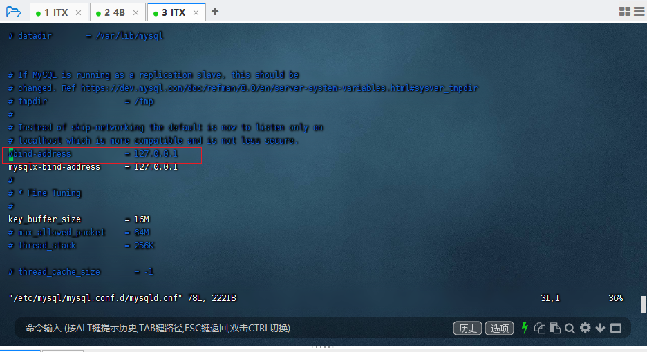 修改/etc/mysql/mysql.conf.d/mysqld.cnf,注释掉bind-address = 127.0.0.1