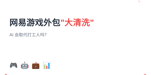 2026年3月,网易游戏被传将大规模裁减外包人员,规模或达千人以上,并涉及AI替代人工的讨论。网易官方多次辟谣,称仅为部分项目调整,AI替代是未来趋势而非当前事实。分析指出,外包岗位尤其是美术、翻译等易被AI替代的领域风险较高,建议从业者积极学习AI工具并寻求转型,以应对行业变革。