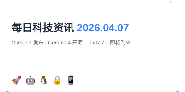 今天是 2026 年 4 月 7 日,科技圈依然热闹非凡。从 AI 编程工具的重大升级到开源大模型的新突破,一起看看最近有哪些值得关注的科技动态。